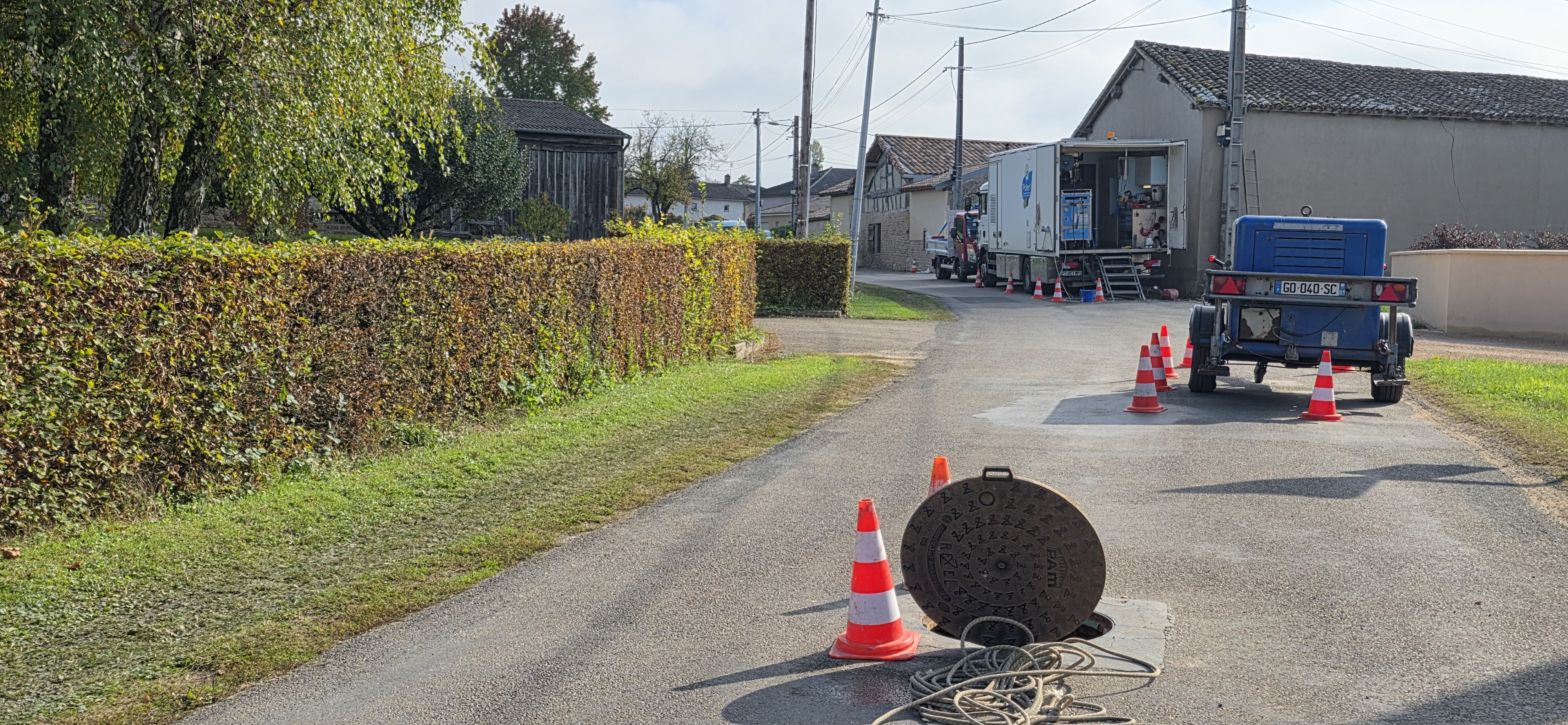 Ce matin, c’est par la Route des Greffets que l’entreprise Polen a débuté les travaux de réhabilitation des réseaux d’assainissement en employant la technique du chemisage.